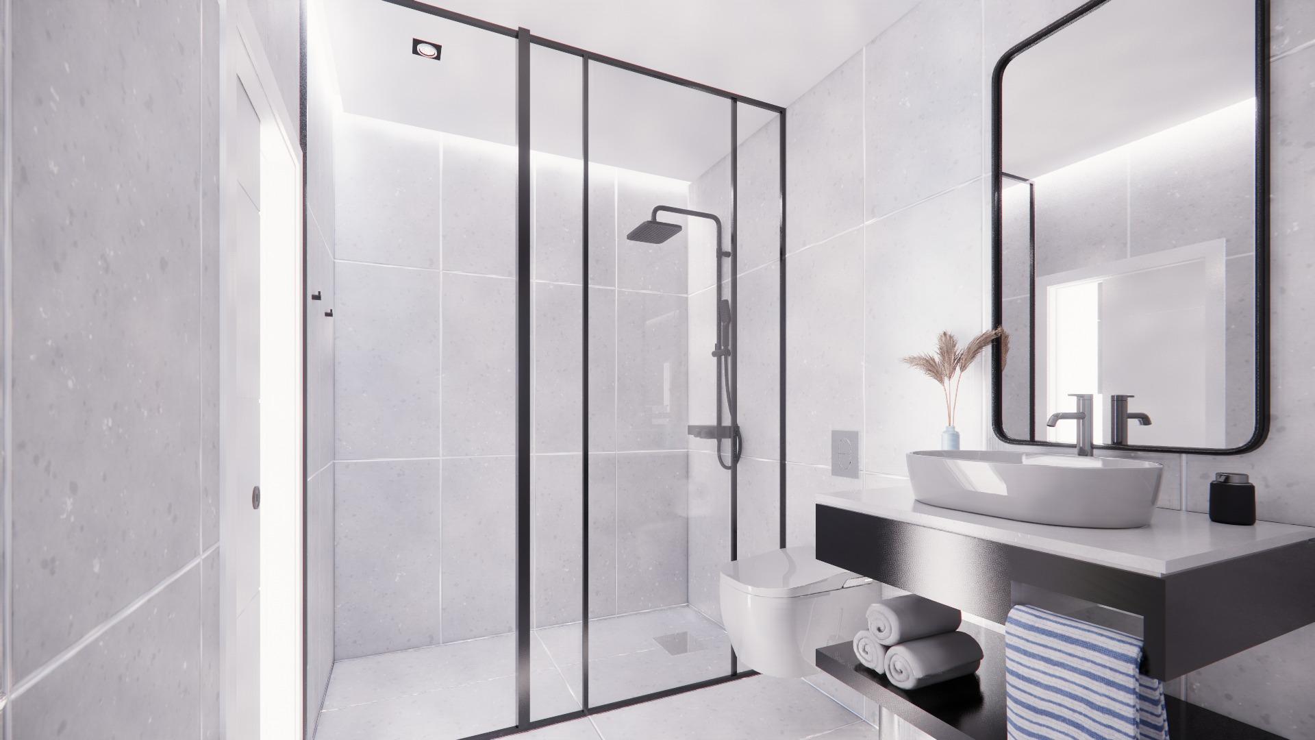 • Sanitarios de primera calidad y bajo consumo, platos de ducha a ras de suelo y grifería monomando y termostática.